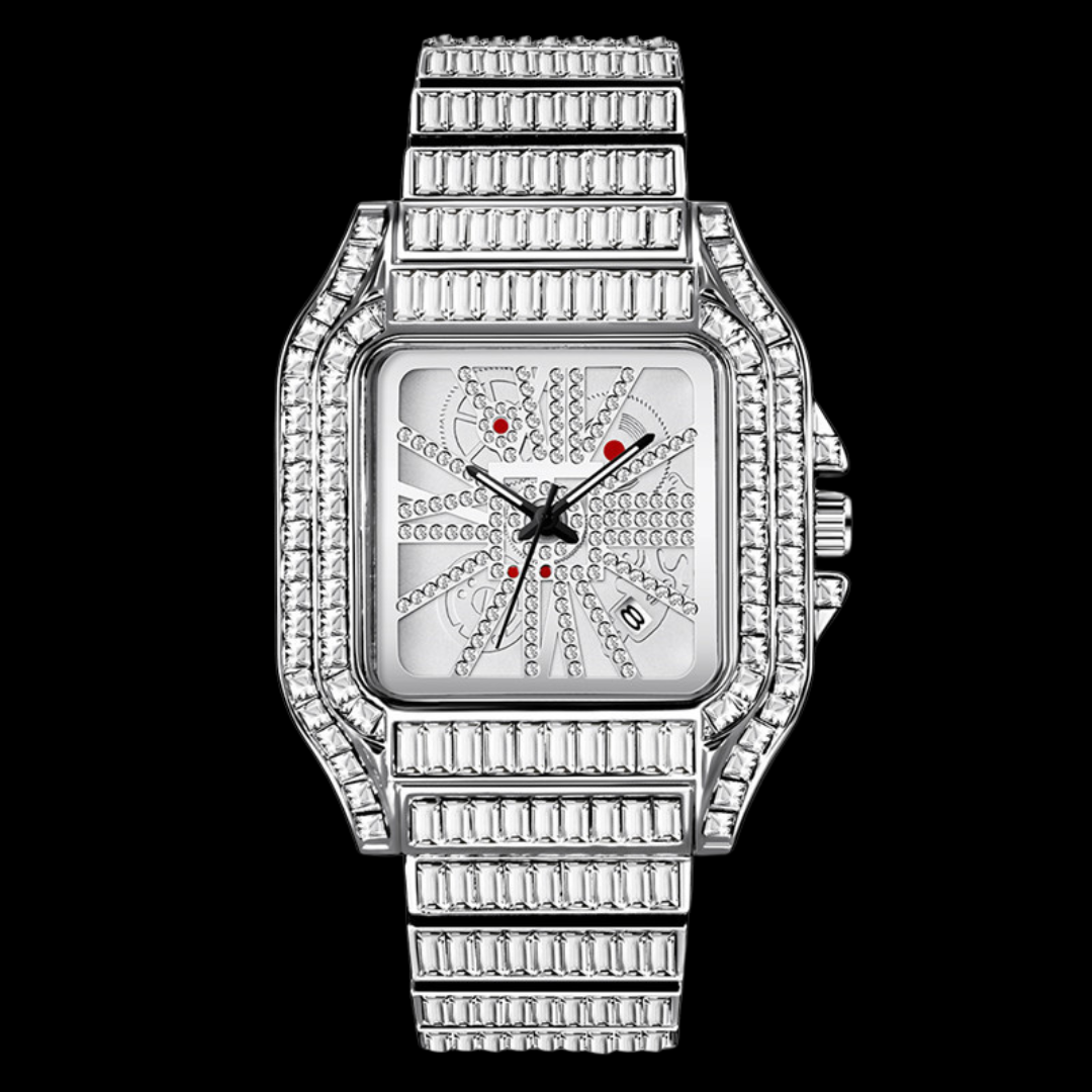 Square Fully Diamond Date Iced Out Diamond Watch